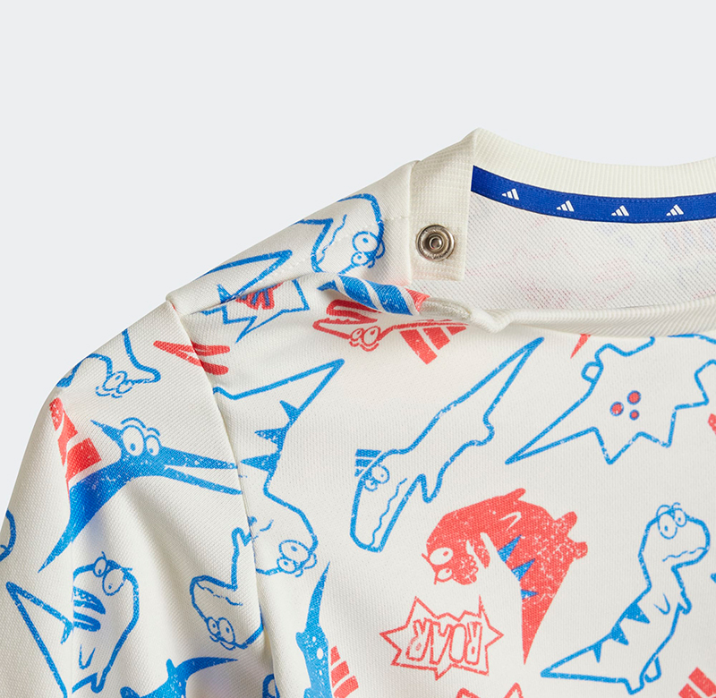 Τα παιδιά που λατρεύουν τους δεινόσαυρους θα λατρέψουν αυτό το βρεφικό σετ φόρμας. Το ύφασμα French Terry είναι κατασκευασμένο για άνεση και διασκέδαση. Το παιχνιδιάρικο τύπωμα δεινοσαύρου της μπλούζας είναι ιδανικό για την παιδική χαρά.